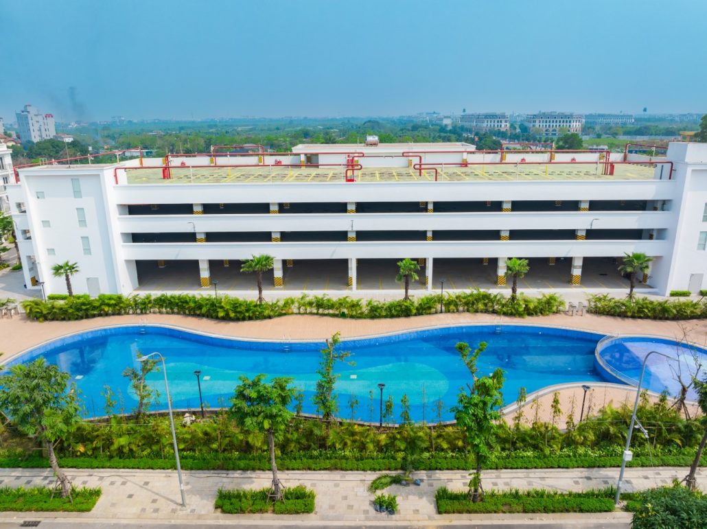 Tòa nhà để xe rộng gần 3000m2 đáp ứng toàn bộ nhu cầu đỗ xe của cư dân. Gia chủ không cần làm gara trong nhà, tiết kiệm diện tích, gia tăng không gian sử dụng.